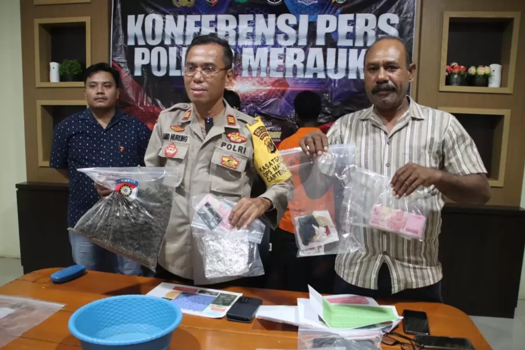 TERASTIMUR.com, MERAUKE – Dua pengedar Narkotika jenis ganja di Merauke berhasil ditangkap oleh Satuan Reserse Narkoba Polres Merauke.