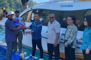 TERASTIMUR.com - Penjabat Gubernur Papua Muhammad Ridwan Rumasukun menyerahkan bantuan di Keramba Jaring Apung, Kabuena, Distrik Yapen Selatan, Serui, Kamis...