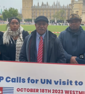 TERASTIMUR.com - Presiden Sementara West Papua Hon. Benny Wenda memberikan sambutan sesaat sebelum peluncuran “Seruan untuk kunjungan PBB ke West...