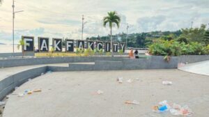 TERASTIMUR.com, FAKFAK - Pasca perayaan malam tahun baru semalam, lokasi Taman Kota Satu Tungku Tiga Batu yang menjadi tempat berkumpul kini dipenuhi sampah. Bagian pelataran depan Taman Kota Satu Tungku Tiga Batu Fakfak terdapat banyak sampah bekas petasan...