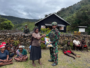 TERASTIMUR.com-Pos Tinolok Satgas Pamtas Kewilayahan Yonif 715/Motuliato, membagikan sembako berupa beras kepada masyarakat sekitar Pos Tinolok di wilayah Distrik Mulia,...