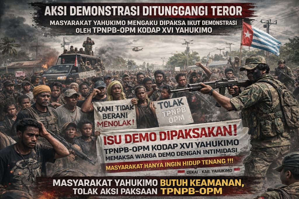 TERASTIMUR.COM – Aksi yang mengatasnamakan demonstrasi damai masyarakat dan mahasiswa Yahukimo menuju Kantor DPRD Kabupaten Yahukimo diduga kuat tidak sepenuhnya lahir dari aspirasi murni rakyat. Sejumlah warga menyampaikan bahwa aksi tersebut ditunggangi dan dipaksakan oleh kelompok bersenjata TPNPB-OPM Kodap XVI Yahukimo, dengan pola intimidasi yang membuat masyarakat berada dalam posisi tertekan dan takut menolak.