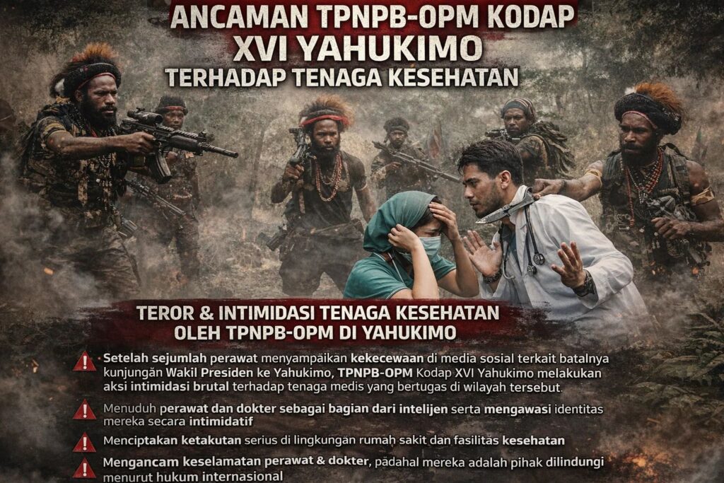 TERASTIMUR.COM – Aksi intimidasi kembali dilakukan oleh TPNPB-OPM Kodap XVI Yahukimo, kali ini menyasar tenaga kesehatan yang bertugas di wilayah Yahukimo. Intimidasi tersebut muncul setelah sejumlah perawat dan suster menyampaikan ungkapan kekecewaan secara pribadi di media sosial terkait batalnya kunjungan Wakil Presiden ke Yahukimo. Unggahan yang bersifat ekspresi personal itu justru dibalas dengan ancaman, tudingan, dan bahasa intimidatif yang mengarah pada keselamatan para tenaga medis.