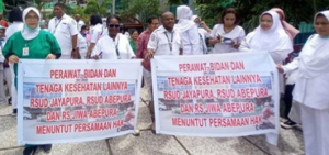 TERASTIMUR.com - Aliansi ketenaga Kesehatan dari tiga rumah sakit di Provinsi Papua menggelar aksi tuntutan persamaan hak TPP. Diketahui, para...