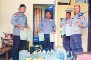 TERASTIMUR.com - Sebanyak 306 liter minuman keras (miras) lokal diamankan personel Polsek Kawasan Pelabuhan Pomako saat KM Sirimau berlabuh di...