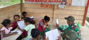 TERASTIMUR.com - Para personel Satgas Yonif 407/ PK Pos Werabuan ajarkan mata pelajaran Matematika kepada anak-anak di Kampung Werpigan, Distrik...