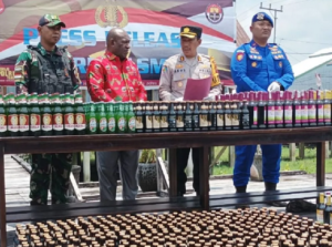 TERASTIMUR.com - Kepolisian Resor(Polres) Asmat memusnahkan sebanyak 2.196 botol yang sebelumnya berhasil diamankan dari dalam dua kontainer yang diangkut KM...