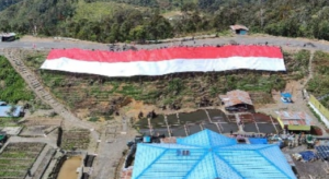 Satgas Yonif PR 330/Tri Dharma Bentangkan Bendera ‘Raksasa’ Di Intan Jaya