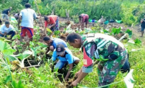TERASTIMUR.com, BIAK - Masyarakat Kampung Kajasbo, Distrik Biak Timur, Kabupaten Biak Numfor, Papua, didampingi Babinsa Kodim 1708 Biak mengolah lahan...