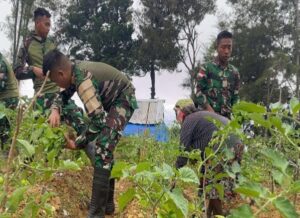 TERASTIMUR.com-Satuan Tugas (Satgas) Yonif 521/DY bergotong-royong membantu memanen hasil kebun masyarakat Distrik Napua, Kabupaten Jayawijaya, Papua Pegunungan sebagai wujud komunikasi...