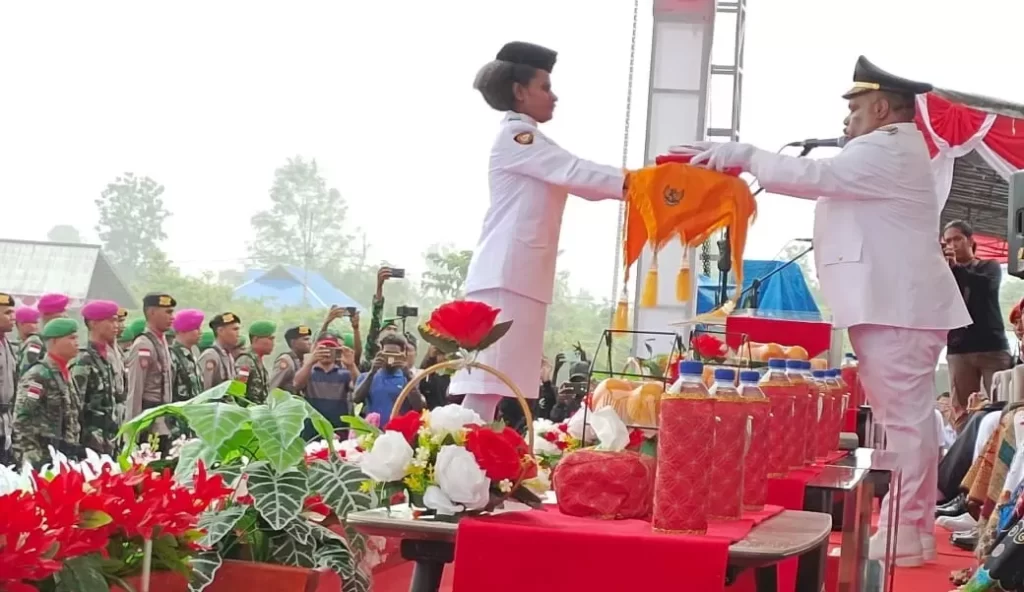 Di Warnai Hujan Deras, Pengibaran Bendera Di yahukimo Berjalan Lancar
