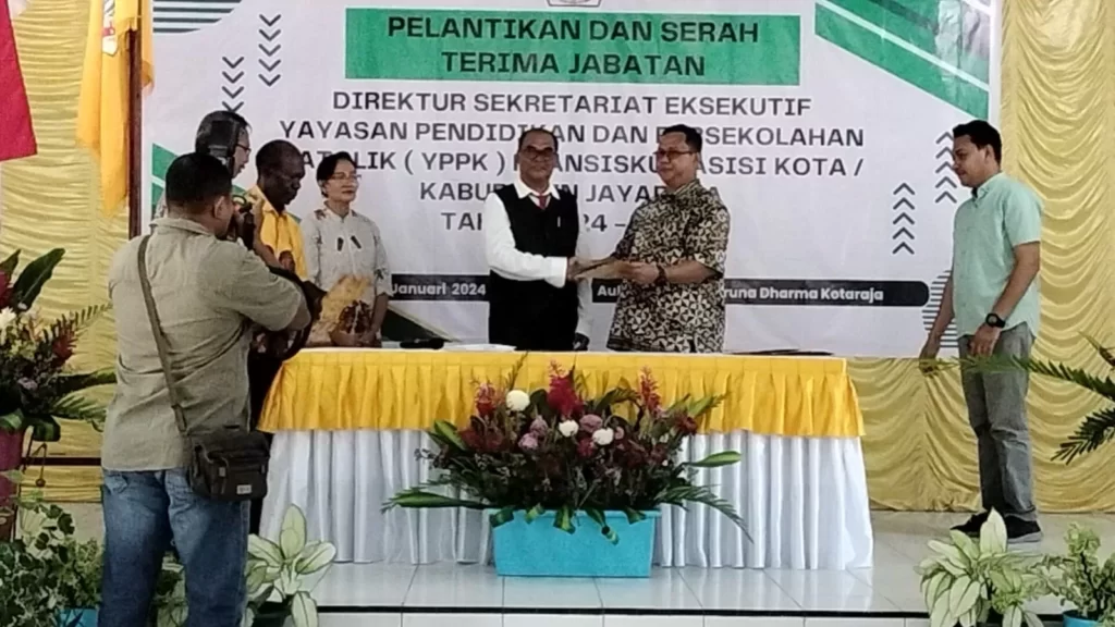 TERASTIMUR.com, JAYAPURA – Direktur Sekretariat Eksekutif Yayasan pendidikan dan Persekolahan Katolik (YPPK) St. Fransiskus Asisi Kota Kabupaten Jayapura akhirnya melakukan pergantian.Direktur sebelumnya, yang dijabat oleh Silvester Lobya selama 10 tahun, saat ini diganti oleh pimpinan yang baru, Ferdinando Lase.