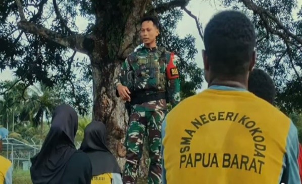 TERASTIMUR.com-Menjelang peringatan Hari Kemerdekaan 17 Agustus, Satgas Pamtas RI-PNG Yonif 763/SBA Pos Kokoda mempersiapkan Upacara Pengibaran Bendera Merah Putih dengan melatih para pelajar di wilayah Distrik Kokoda, Prov Papua Barat Daya, Senin (11/8/2025).