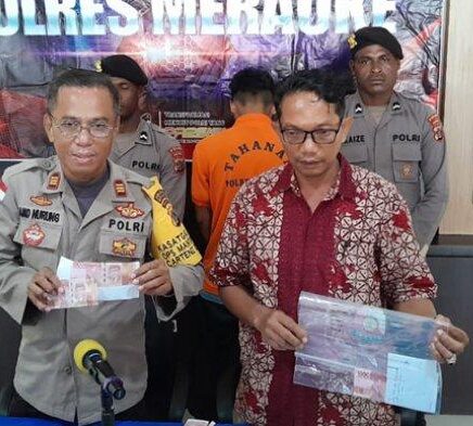 TERASTIMUR.com, MERAUKE –  Seorang pemuda Merauke, berinisial DTW (23) harus berurusan dengan hukum, lantaran dengan sengaja mencetak uang palsu dan melakukan transaksi di tempat umum.