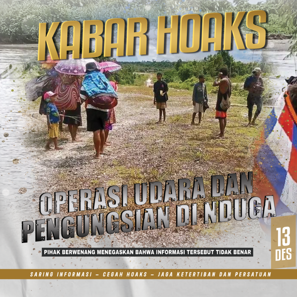 TERASTIMUR.COM. – Kabar yang menyebutkan adanya penetapan status darurat militer serta operasi udara TNI–Polri menggunakan tiga helikopter dengan pengeboman di Distrik Gearek dan Distrik Pasir Putih, Kabupaten Nduga, dipastikan tidak benar. Informasi tersebut diklarifikasi sebagai hoaks.