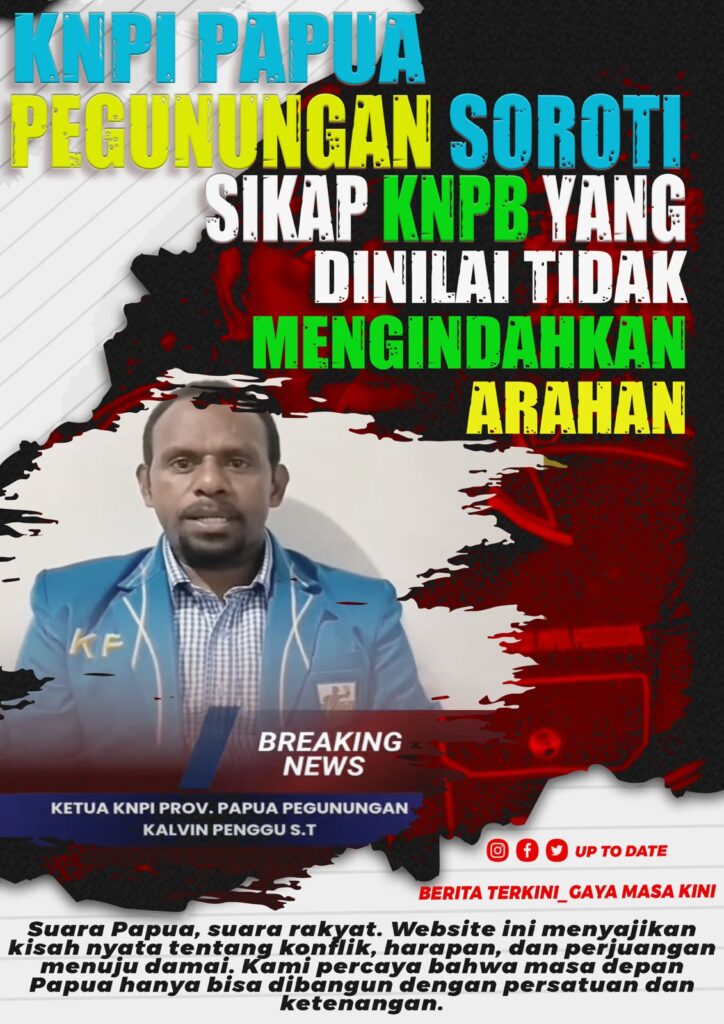 TERASTIMUR.COM – Pengurus Komite Nasional Pemuda Indonesia (KNPI) Papua Pegunungan menyampaikan kekecewaan terhadap Komite Nasional Papua Barat (KNPB) yang dinilai tidak mematuhi arahan dan imbauan organisasi kepemudaan di wilayah tersebut. KNPI Papua Pegunungan menyampaikan kekecewaan terhadap KNPB, setelah organisasi tersebut tetap melakukan aktivitas konsolidasi untuk aksi demonstrasi, meski sebelumnya telah dikeluarkan larangan resmi agar seluruh kelompok pemuda menunda kegiatan turun jalan.