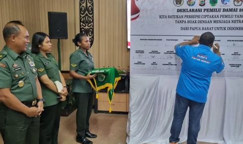 “Tujuan deklarasi ini agar insan media dan tokoh pemuda bersama Kodam Kasuari dapat bersinergi memainkan peran vital dalam menjaga stabilitas dan keamanan selama proses pemilu,” kata Kapok Sahli Pangdam XVIII/Kasuari Brigjen TNI Juniras Lumbantoruan.