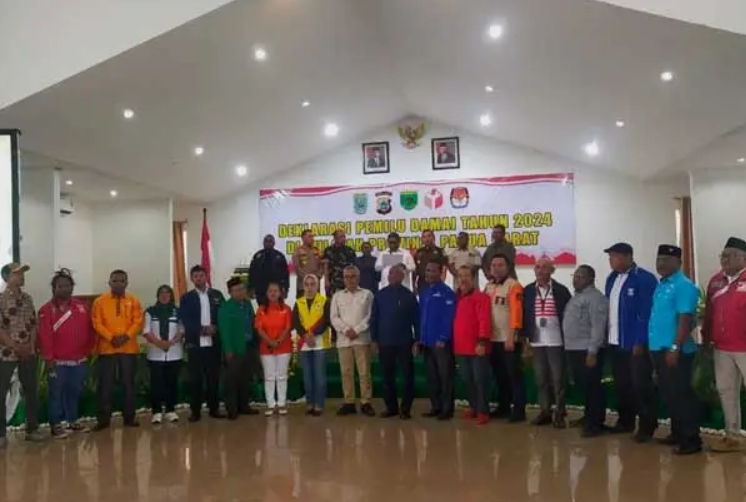 Pangdam berharap jangan sampai perebutan suara tersebut membuat suasana damai jadi rusak. “Di sini, saya mengajak kepada semua yang hadir untuk bersama-sama menyatukan hati dengan damai. Mari dengan adanya deklarasi damai ini kita tanamkan dalam hati bahwa suasana khususnya Provinsi Papua Barat menjadi daerah yang tenang, damai, dan menjadi contoh terhadap daerah lain dengan keharmonisannya di segala lini,” ajak Pangdam.