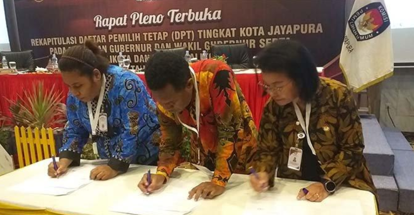 Penetapan DPT dimulai pembacaan hasil rekapitulasi daftar pemilih tetap oleh tiap-tiap PPD dari 5 distrik se-Kota Jayapura.
