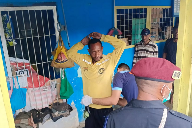 TERASTIMUR.com, MERAUKE – Operasi gabungan yang terdiri dari petugas Lapas Merauke, Kodim 1707/Merauke dan Polres Merauke. Operasi dimulai sekitar pukul 08.00 WIT dengan melakukan pemeriksaan dan penggeledahan di setiap blok hunian Tahanan dalam Lapas Merauke.
