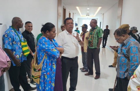 TERASTIMUR.com – Sejumlah mantan anggota Majelis Rakyat Papua (MRP) Periode 2017-2022 mendatangi kantor gubernur Papua, Kamis (21/9). Tujuan kedatangan mereka ingin bertemu langsung dengan Pj Gubernur Papua, Dr. Ridwan Rumasukun, untuk mempertanyakan terkait dengan pembayaran hak-hak mantan anggota MPR tersebut.