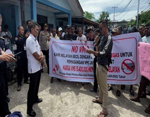 “Kami nelayan kecil menolak tegas pemasangan VMS di kapal berukuran 30 GT. Harga VMS sebesar Rp 15.400.000 sangat memberatkan kami,” ujar Irfan Maulana, koordinator aksi di Kantor SDKP. Nelayan menilai bahwa program tersebut tidak mendukung mereka karena biaya yang sangat tinggi.