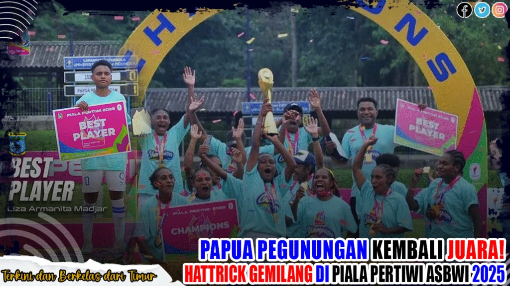 TERASTIMUR.COM – Papua Pegunungan menegaskan supremasinya di dunia olahraga wanita Indonesia dengan meraih gelar juara Piala Pertiwi ASBWI 2025 untuk ketiga kalinya berturut-turut. Gelar hattrick ini bukan sekadar kemenangan, melainkan simbol ketangguhan, semangat juang, dan kebanggaan Papua di panggung Nasional.