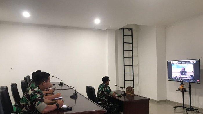 Komandan Korem 182/Jazira Onim, Kolonel Inf Aswin Kartawijaya mengikuti rapat bahas pengembangan situasi di daerah Papua bersama pimpinan rapat asisten operasi Panglima TNI, Mayor Jenderal TNI Gabriel Lema di Ruang Vicon Makorem 182/JO, Kampung Kiat, Distrik Fakfak Barat.