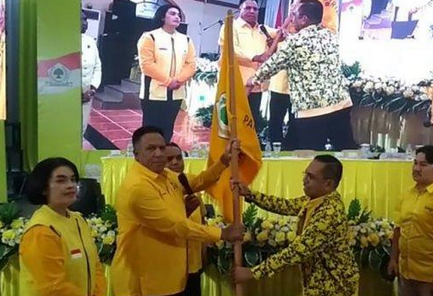 Usai terpilih, Mantan Kabaintelkam Polri itu menerima bendera pataka Partai Golkar dari Plt Ketua Golkar Papua Barat Syahmud Basri Ngabalin.