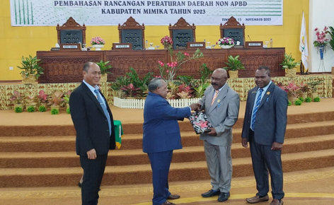 Ranperda tersebut diserahkan langsung oleh Bupati Mimika Eltinus Omaleng dalam Rapat Paripurna Pembukaan Paripurna I Masa Sidang III DPRD Kabupaten Mimika Tentang Pembahasan Rancangan Peraturan Daerah Non APBD Tahun 2023 di Ruang Sidang Kantor DPRD Mimika, Kabupaten Mimika, Papua Tengah, Rabu (15/11).