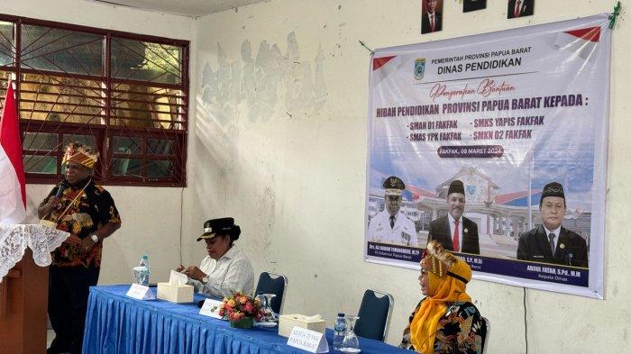 TERASTIMUR.com, FAKFAK – Pemerintah Provinsi (Pemprov) Papua Barat menyerahkan bantuan hibah untuk 4 sekolah setingkat SMA se-derajat di Kabupaten Fakfak, Provinsi Papua Barat, Jumat (8/3/2024).