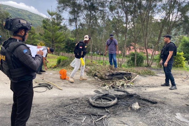 Polisi Olah TKP Kericuhan Pada Saat Pencairan Dana BLR di Tolikara