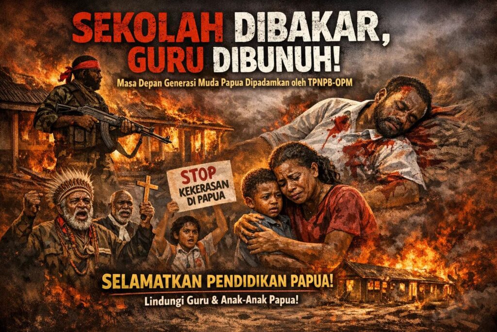 Pembakaran sekolah dan pembunuhan kepada guru merupakan kejahatan kemanusiaan yang sangat keji. Pendidikan sengaja dihancurkan, tenaga pendidik diteror dan dibunuh, sehingga anak-anak Papua dipaksa hidup dalam ketakutan dan ketidaktahuan. Tanpa sekolah dan tanpa guru, generasi muda kehilangan arah, masa depan dikubur paksa, dan Papua didorong masuk ke jurang keterbelakangan yang berkepanjangan. Anak-anak Papua dipaksa tumbuh dalam ketakutan dan ketidaktahuan, terjebak dalam lingkaran kemiskinan, kebodohan, keterbelakangan pendidikan dan kekerasan.