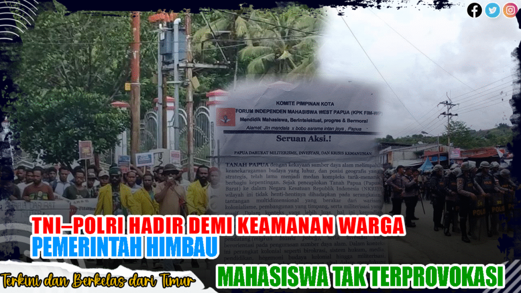 TERASTIMUR.COM – Panas terik siang menyelimuti pusat Kota Nabire ketika ratusan mahasiswa turun ke jalan menyuarakan aspirasi soal kondisi Papua. Aksi yang dimulai dari halaman kampus hingga depan Kantor Majelis Rakyat Papua (MRP) Papua Tengah itu sempat menarik perhatian warga. Namun berkat pengamanan ketat aparat TNI–Polri, situasi tetap berjalan aman dan terkendali.