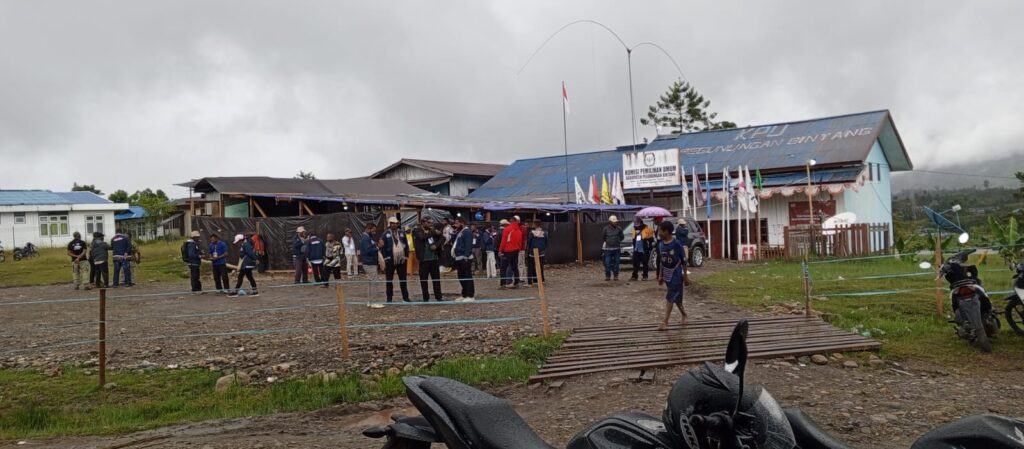 TERASTIMUR.com,OKSIBIL – Aparat TNI-Polri dan Satgas Damai Cartenz perketat pengamanan rapat pleno perolehan suara pemilu 2024 di kantor Komisi Pemilihan Umum (KPU) di Oksibil, Kabupaten Pegunungan Bintang.