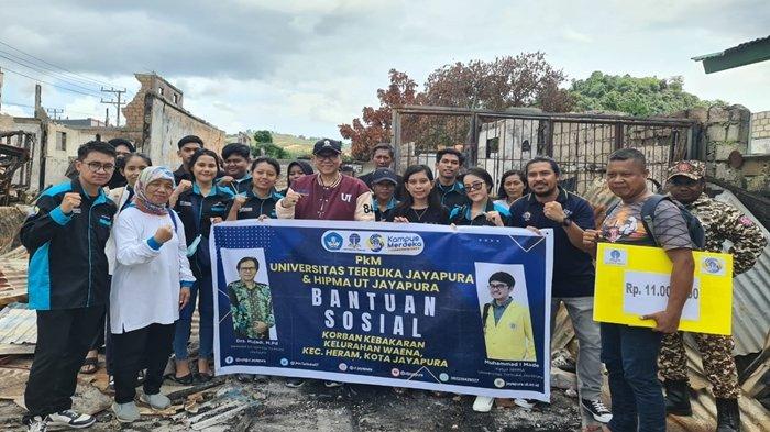 Direktur Universitas Terbuka Jayapura DR Mujadi. Mpd bersama sejumlah pegawai serta mahasiswa mendatangi lokasi kebakaran dan menyerahkan bantuan untuk meringankan beban.